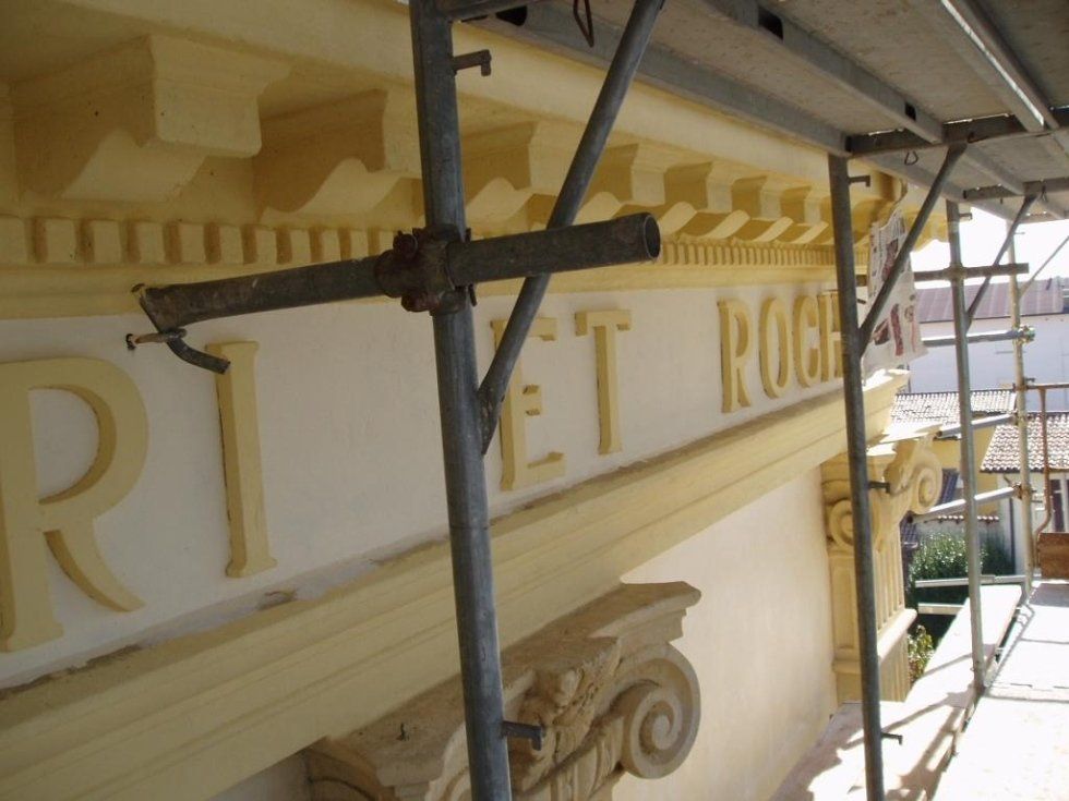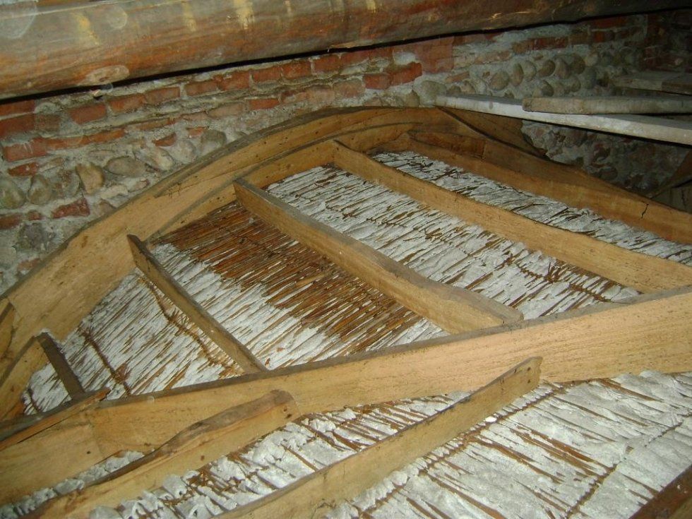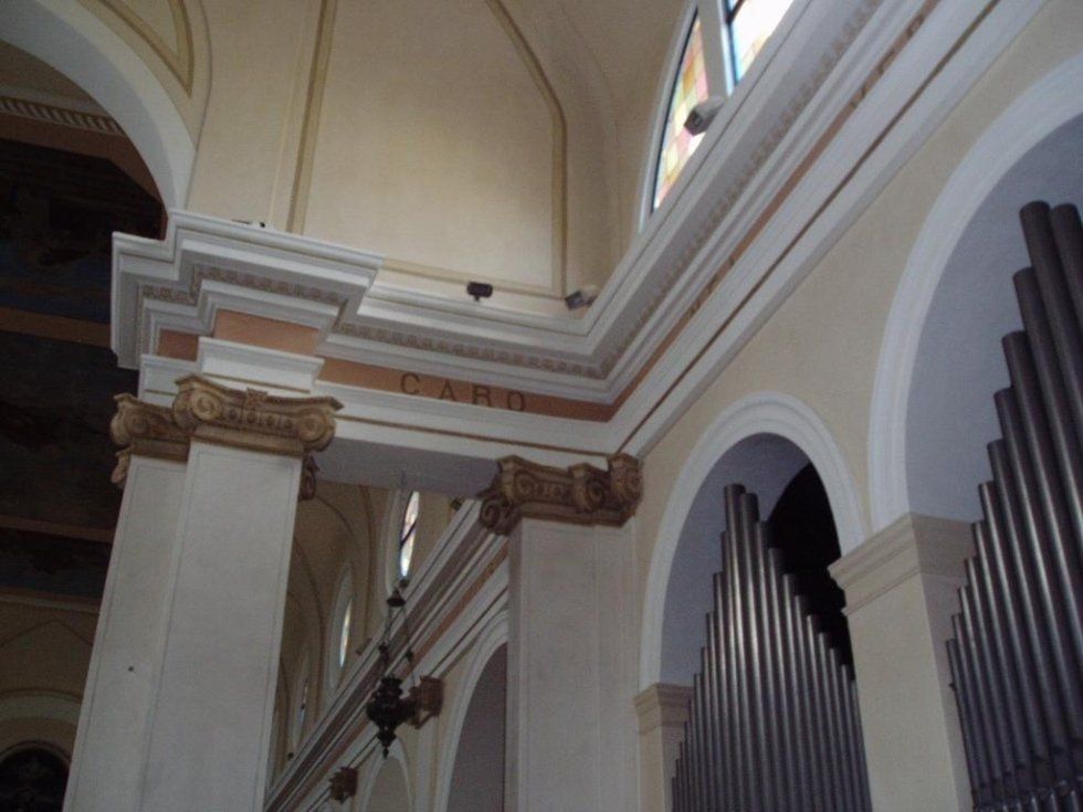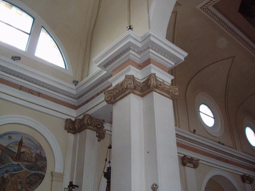 L’intervento progettato ha riguardato l’intera struttura architettonica, comprendendo sia gli interni che gli esterni, risultando così complesso ed articolato. Esso ha previsto il ripristino della copertura dissestata della chiesa con sostituzione delle tegole di cemento con coppi di recupero ed il restauro-consolidamento del sottotetto. Eseguite le opere provvisionali di messa in sicurezza del soffitto, le ispezioni hanno evidenziato la necessità di interventi di pulitura e di sostituzione di porzioni di canniccio costituenti il soffitto. Dopo tali operazioni, si è proceduto ad interventi di consolidamento della controsoffittatura. Successivamente agli interventi di rinforzo delle strutture del tetto, si è proceduto con la pulitura degli intonaci esterni della chiesa e l’applicazione di intonaco deumidificante. Gli interni, in seguito alla tinteggiatura in silicati e alla finitura in marmorino nelle paraste, sono stati impreziositi con minuziose decorazioni e filetti rigorosamente eseguiti a mano libera da parte dei restauratori.