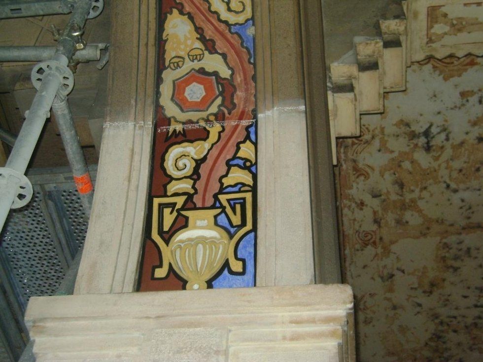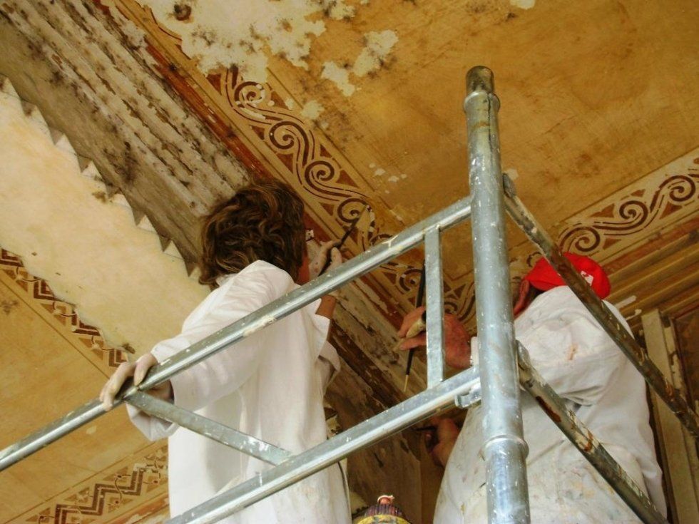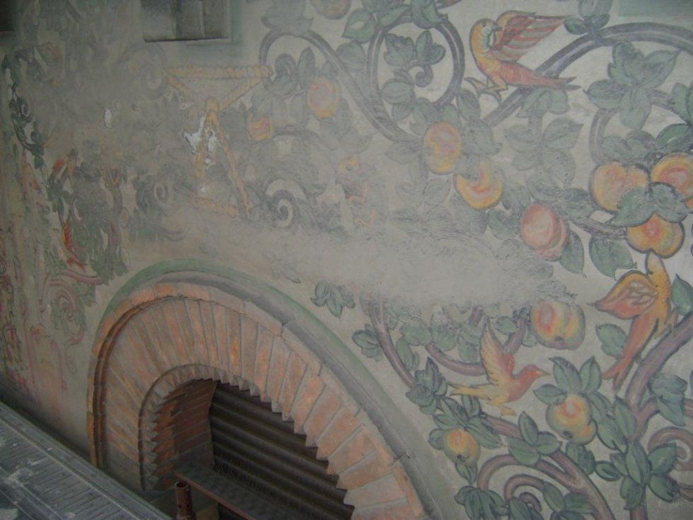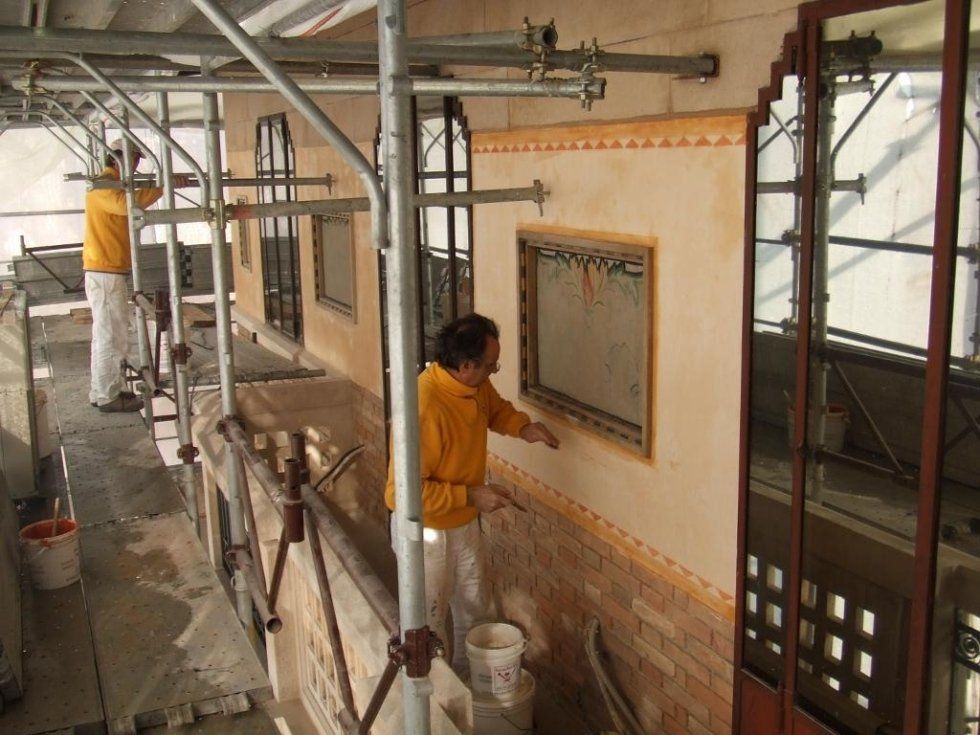 Le operazioni di restauro sono risultate complesse sia per le diverse tipologie delle aree oggetto di restauro che per il loro precario stato di conservazione. Prima dell’intervento si è proceduto con un’analisi preventiva termografica per avere una mappatura dei distacchi, per localizzare le principali fessurazioni della struttura muraria ed individuare la presenza di zone particolarmente umide.