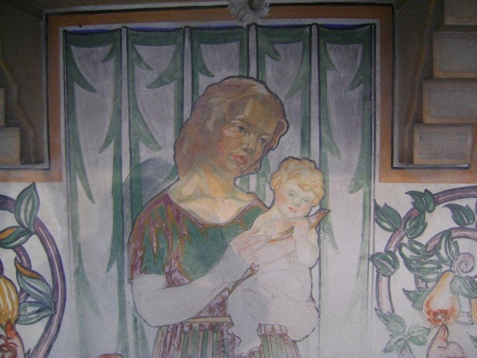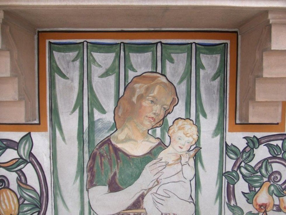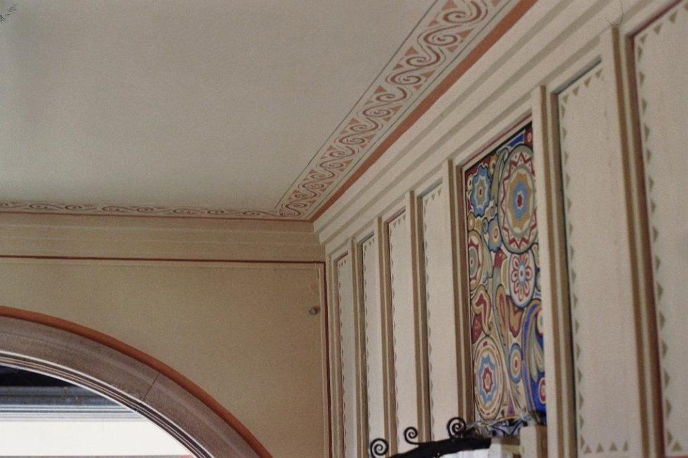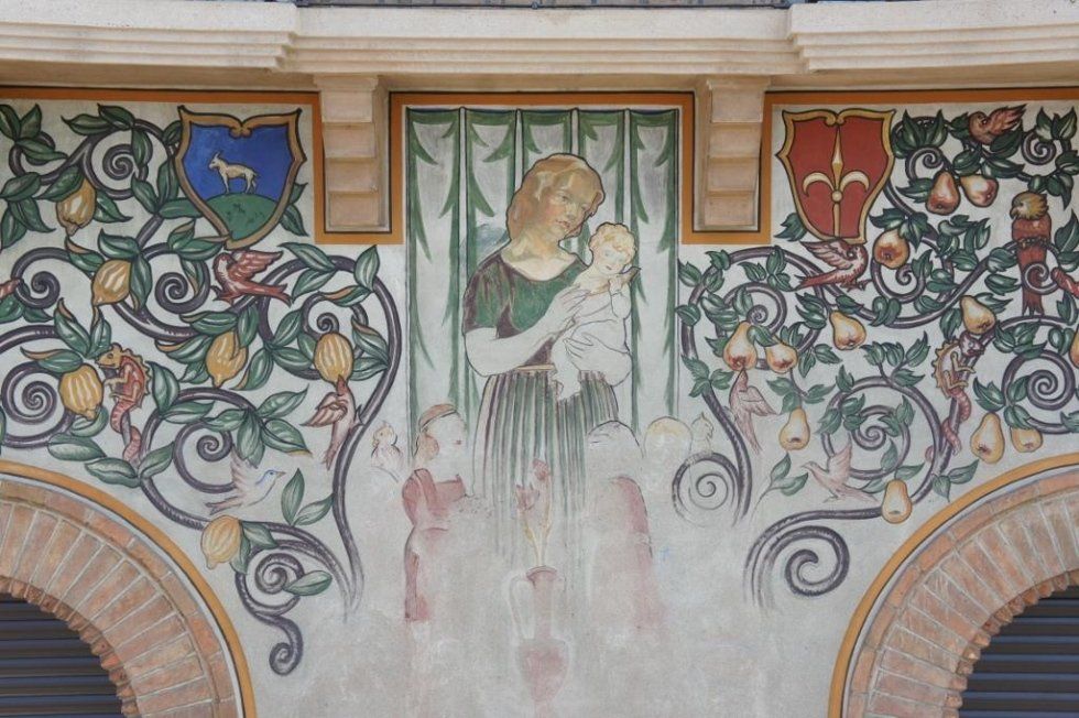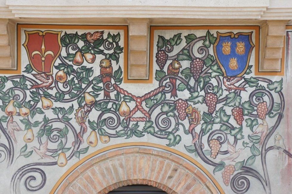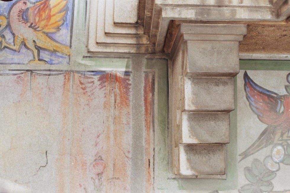 L’intervento si è svolto su tutti i paramenti cementizi della facciata e del sottoportico, sui dipinti murali della facciata, sulla decorazioni pittoriche e di stucco sul soffitto dei sottoportici, sul cornicione ligneo formato da mensoloni portanti e cassettonature orizzontali, sull’intonaco a graffito geometrico e sulle parti della facciata in mattoni a faccia vista.
