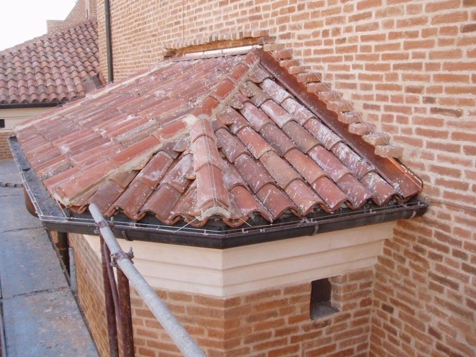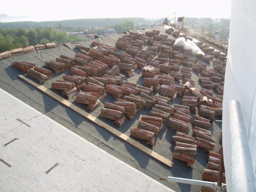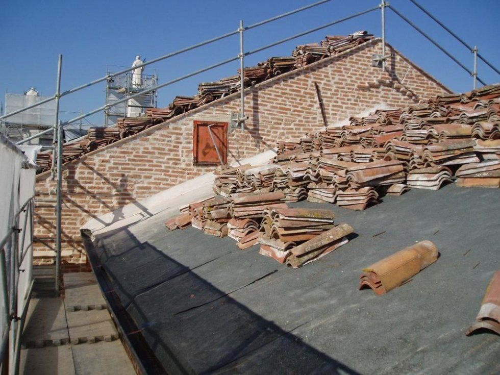 Il rifacimento della copertura prevede: il rilievo del manto esistente, il recupero di tutti i coppi e i mattoni vecchi originari in buono stato, la rimozione di tutti i materiali incoerenti, l’eventuale risanamento delle strutture in legno dei solai, la posa in opera di guaine impermeabilizzanti.